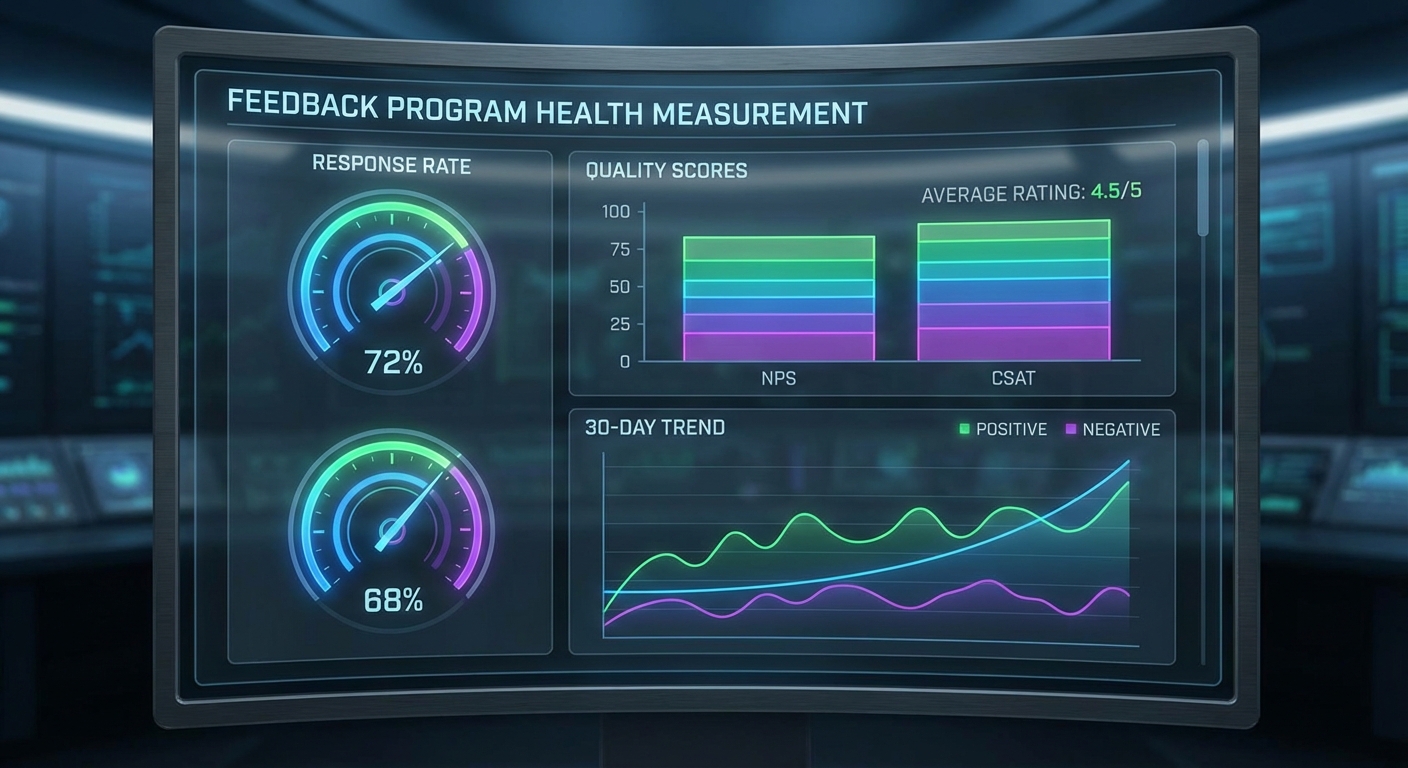 The essential metrics for measuring feedback program health. Benchmark your response rates, assess feedback quality, and track actionability for continuous improvement.