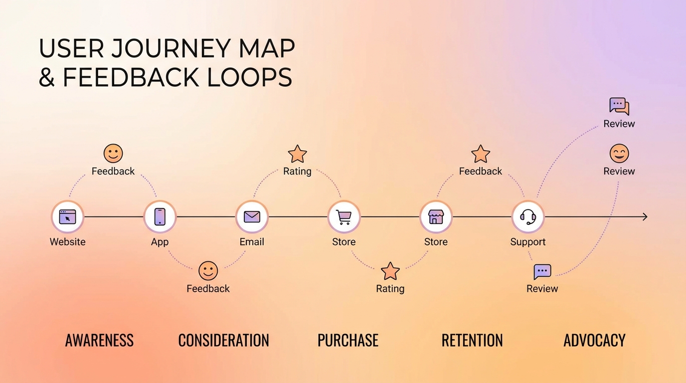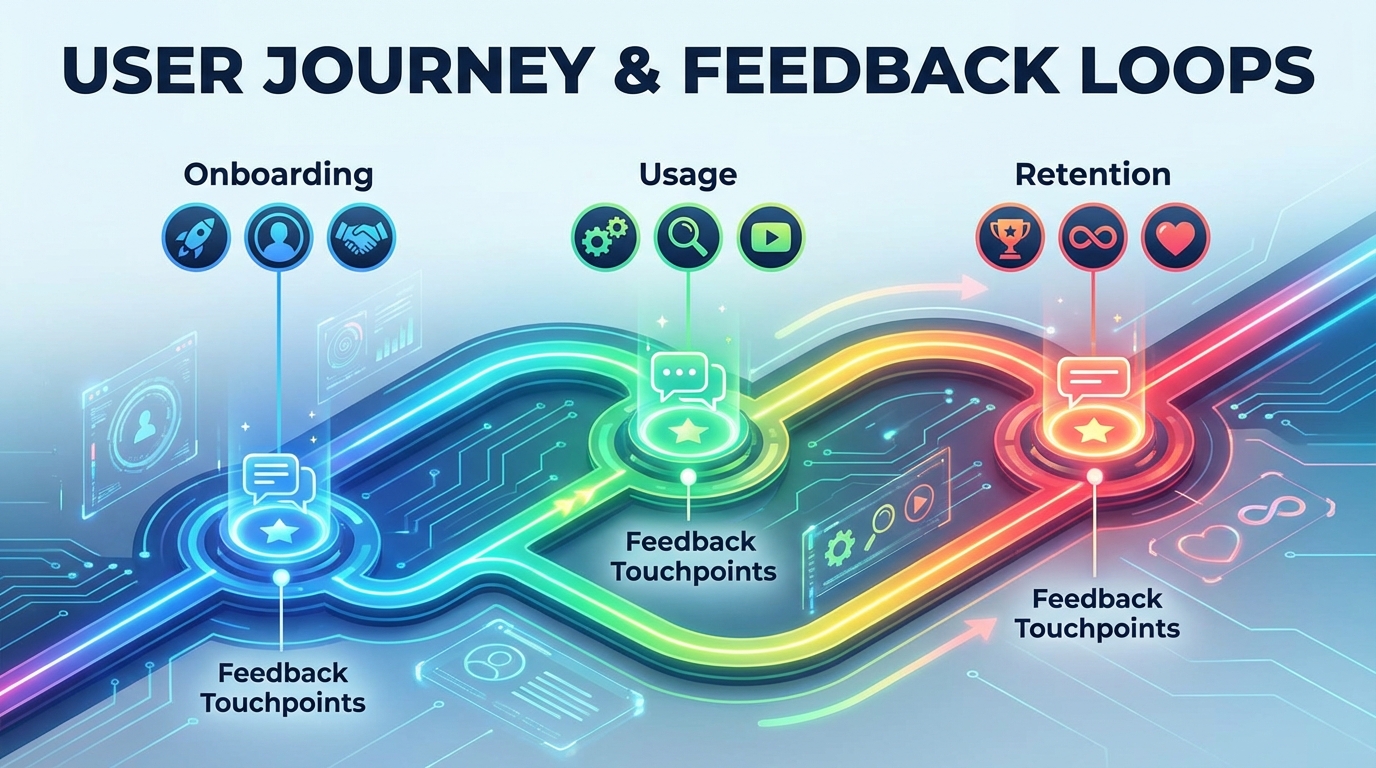 Learn where to place feedback collection across the user lifecycle for maximum insight with minimum friction. A systematic approach to journey-based feedback.