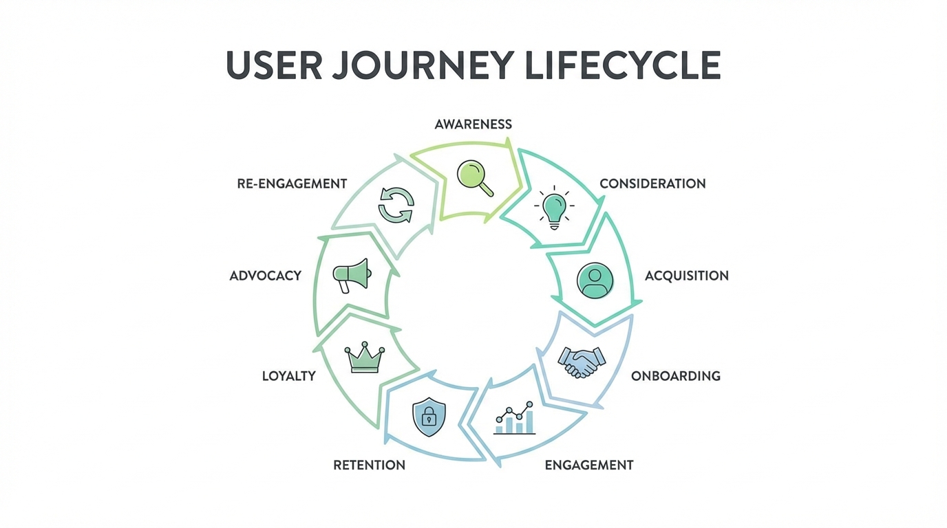 Discover the 9-stage user journey lifecycle for collecting feedback from attract to recapture. Build products users love with continuous insights.